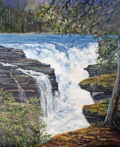 ( New Post Falls-Abitibi River) ‘Northern Wilderness’ was my view looking up through a vast gorge, while ‘Top of the Falls’ ( following painting) reveals the waterfall seen from the top of the gorge. Same location different view. These two paintings are companion pieces but can also be purchased separately.